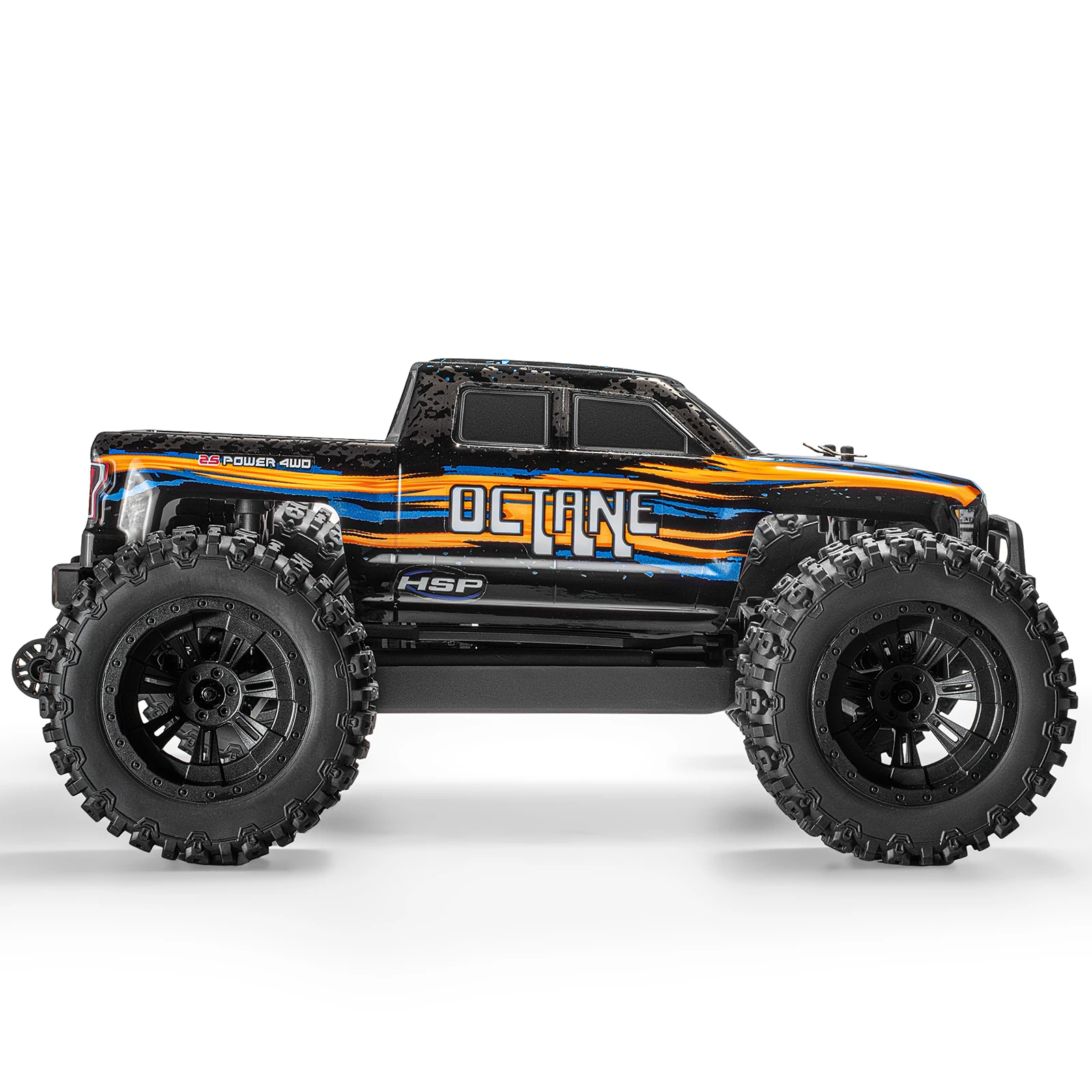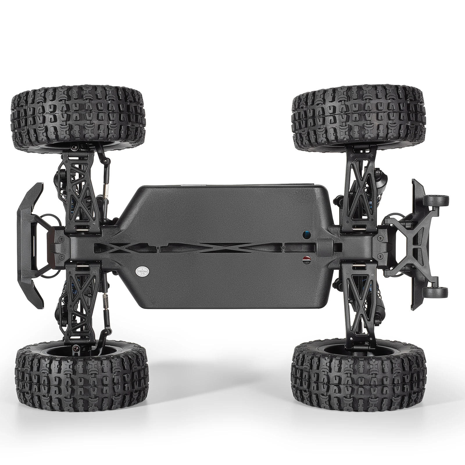 8. 85mm wheels with all-terrain 130mm tires, could well match the Monster Truck performance features, and the chassis is high enough to easily conquer different rugged roads and do higher and longer jump.