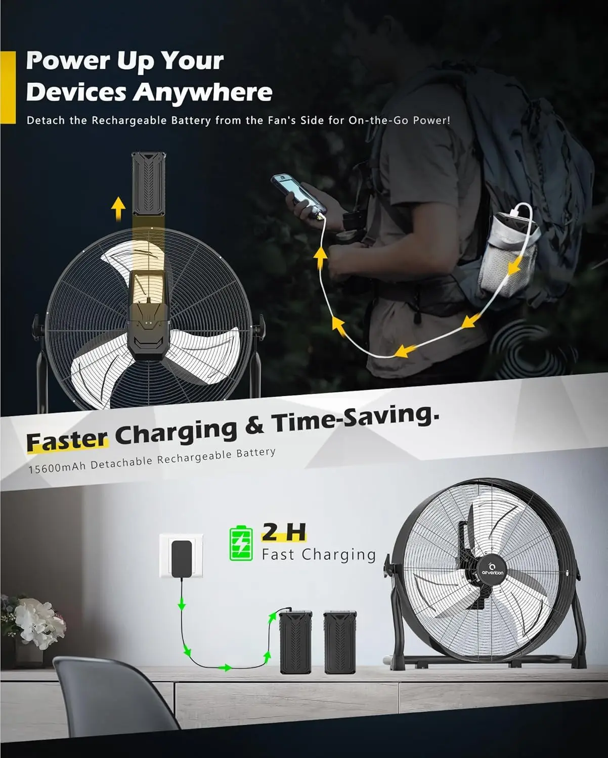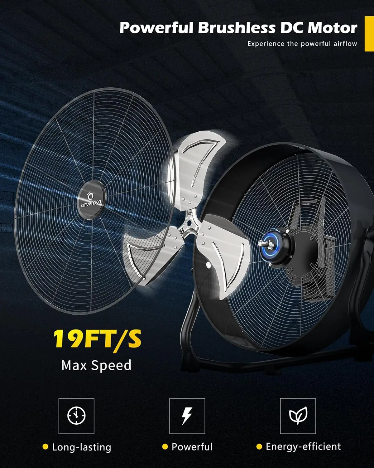 Operated Drum Fan,16 inch Black Industrial High Velocity Floor Fan, Camping Fan