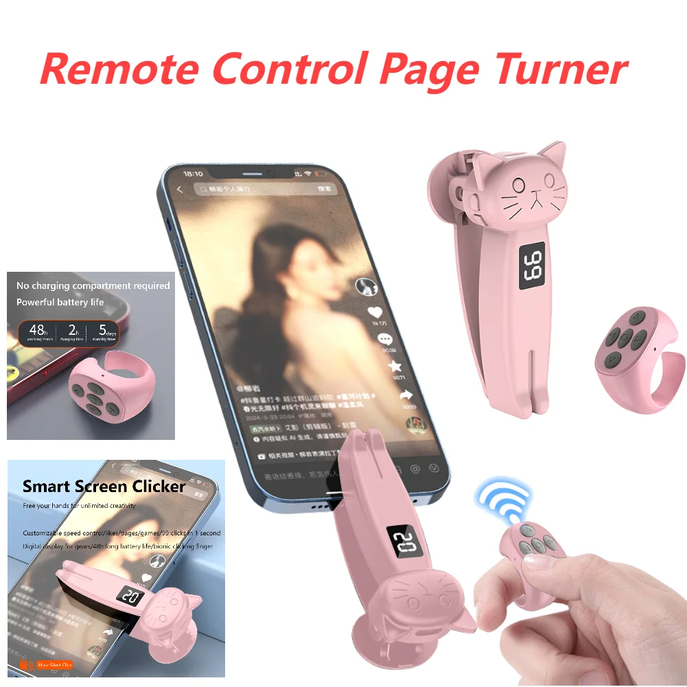 Remote Control Page Turner Bluetooth-Compatible 5.3 Camera Shutter Auto Clicker Phone Screen Tapper Device for Kindle Paperwhite