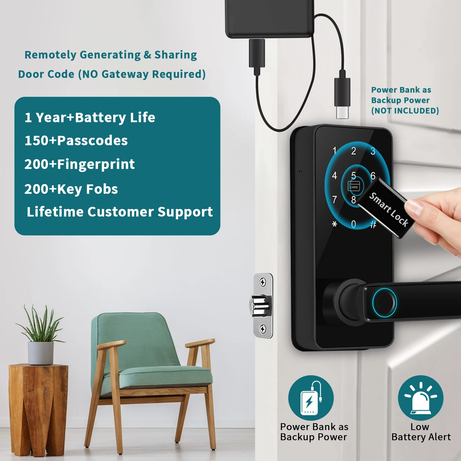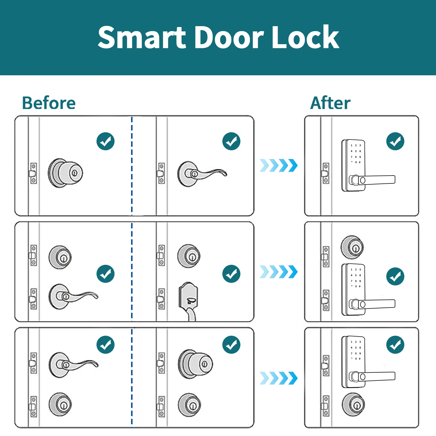 Be the first to review “Smart Door Lock Digital Electronic Lock with Code Passcode, Electric Door Knob, Biometric Handle, Bedroom Doors” Cancel reply